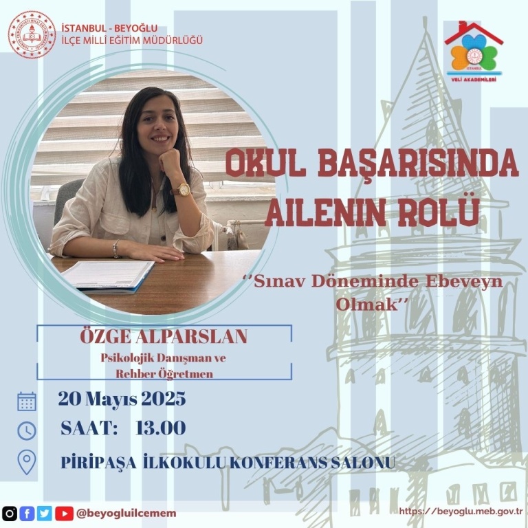 20 Mayıs Salı günü saat 13.00’te Okulumuzun konferans salonunda gerçekleşecektir. 7 ve 8. Sınıf velilerimizin katılması önemlidir. Seminere İlçe Milli Eğitim Müdürümüz ve Kaymakamamız da katılacaktır.