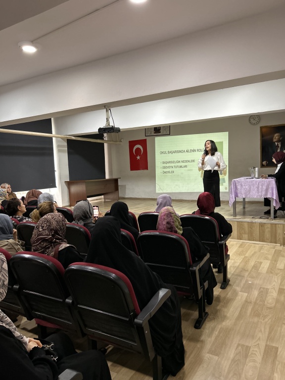 Veli Akademileri kapsamında Okulumuz Psikolojik Danışmanı Özge Alparslan ‘Okul Başarısında Ailenin Rolü ve Sınav Kaygısı’ konulu seminer düzenlenmiştir. Sayın İlçe Milli Eğitim Müdürümüz Cevat Dervişoğlu seminerimize katılarak velilerimizle bir araya gelmiştir. İlçe Milli Eğitim Müdürümüz Cevat Dervişoğlu’na ve semineri düzenleyen Rehberlik Öğretmenleri Özge Alparslan ve Ebru Bektaş’a teşekkür ederiz.
